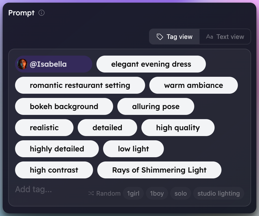 Each part of your prompt becomes a visual chip you can see, move, and edit